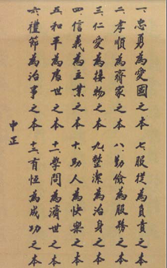 1950年10月25日,蒋介石将其五年前所作“五箴”修订为“四箴”.